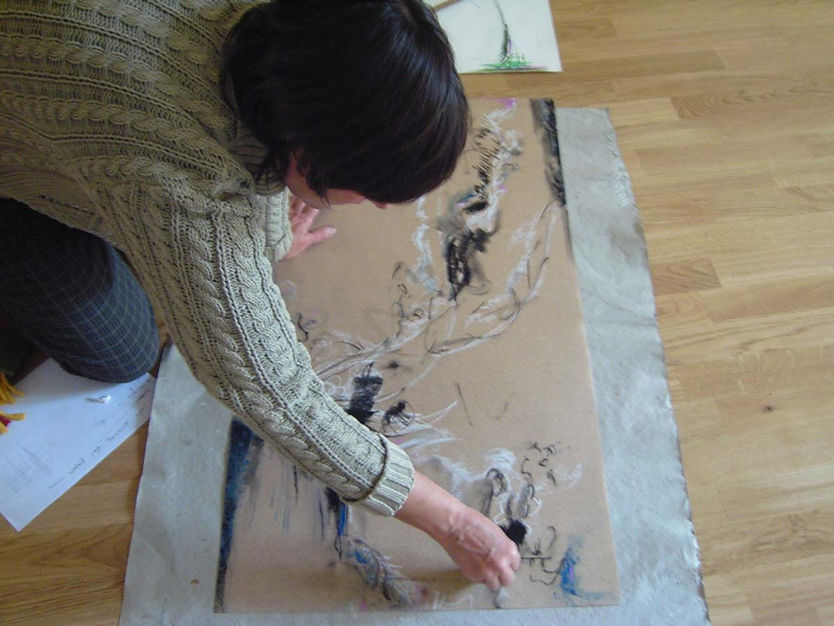 A partir de la improvisació creem l’ambient pels textos i les cançons, gravem un CD. L'Aurora Gasull crea l’animació visual i la Rosa Martí construeix la pantalla de paper treballat.